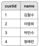 โข Customer์ Orders ๋ ๋ค custid๊ฐ ์กด์ฌํ๋ ํ๋ง ์ถ๋ ฅ