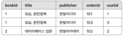 โข ๊ณ ๊ฐ ์ ๋ณด๊ฐ ์๋ ์ฃผ๋ฌธ(custid = 5)๋ ๊ฒฐ๊ณผ์ ํฌํจ