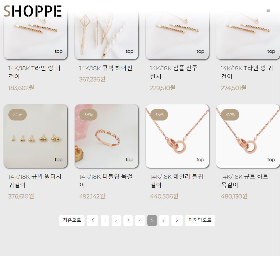 버튼을 클릭하면 handlePageChange에 값을 주도록 하였고 currentPage와 num이 같으면 active 클래스를 주어 색깔이 변경 되게끔 하였다. 또한 앞 뒤 처음 마지막 버튼에는 조건을 추가하여 다음으로 또는 이전으로 갈 수 없는 상황(?)상태 라면 disabled를 true로 주었고 disabled 클래스도 추가해 주었다.