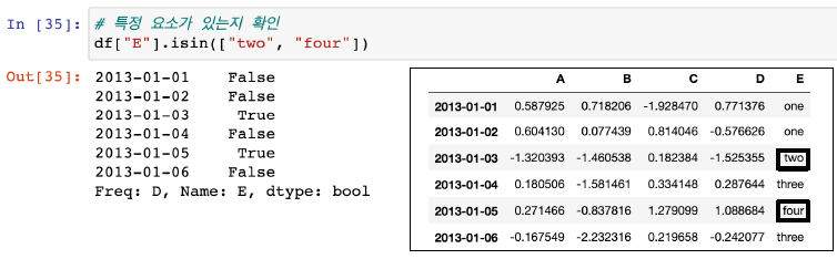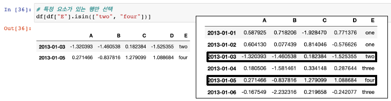 isin을 통한 행 추출, df[df.isin([리스트])]