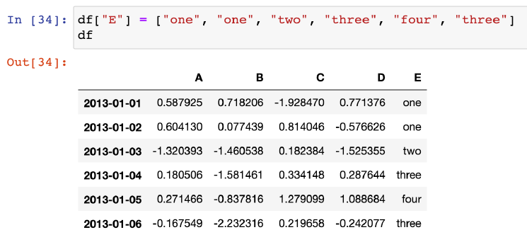 새로운 컬럼과 데이터 추가, df[column] = [리스트]