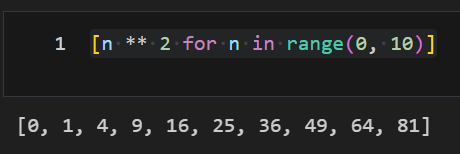 [n ** 2 for n in range(0, 10)] # list comprehension