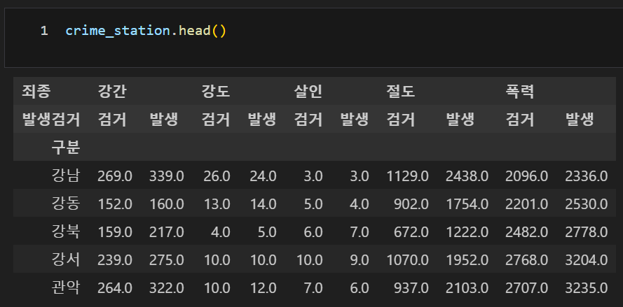 crime_station.to_csv("../data/02. crime_in_Seuol_raw.csv", sep=",", encoding="utf-8")