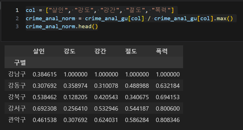 crime_anal_norm = crime_anal_gu[col] / crime_anal_gu[col].max()