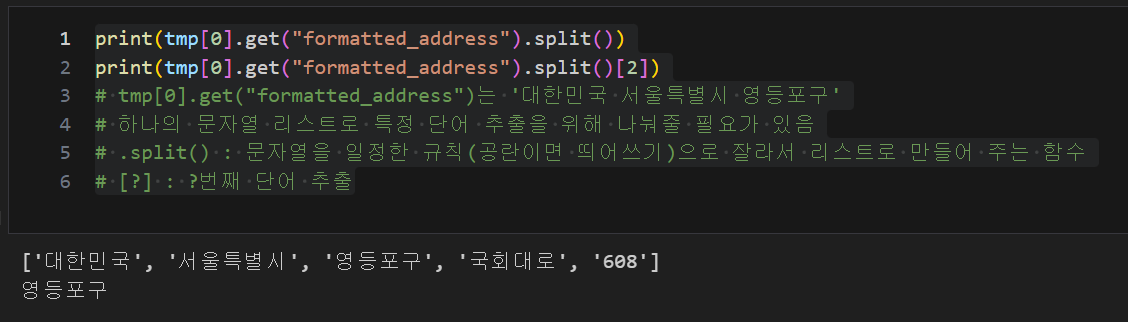 # tmp[0].get("formatted_address")는 '대한민국 서울특별시 영등포구'