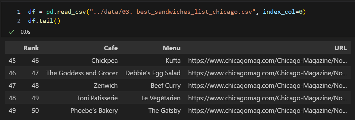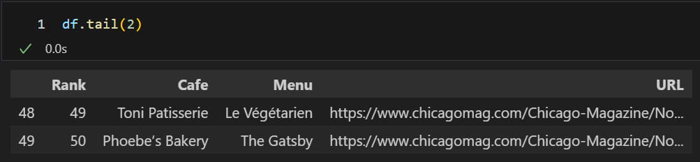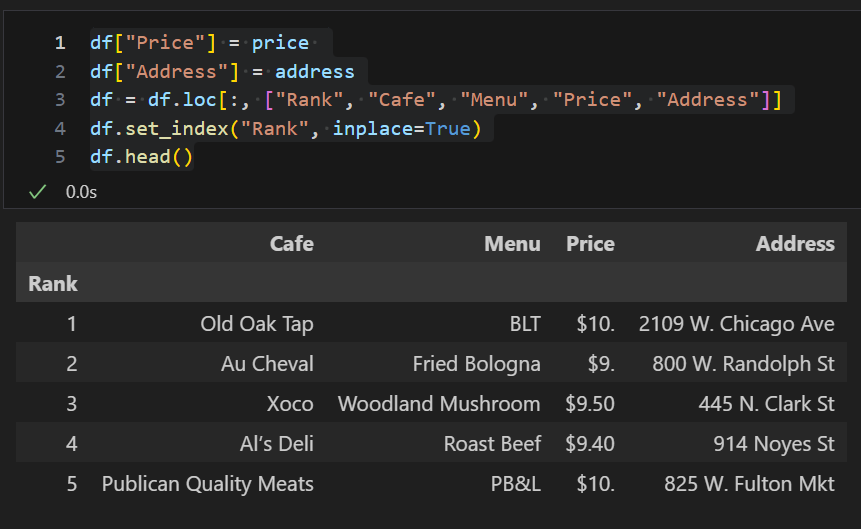 df = df.loc[:, ["Rank", "Cafe", "Menu", "Price", "Address"]]