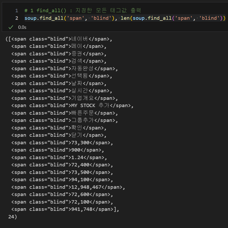 find_all() : 지정한 모든 태그값 출력, 삼성전자의 주식 금액 찾기