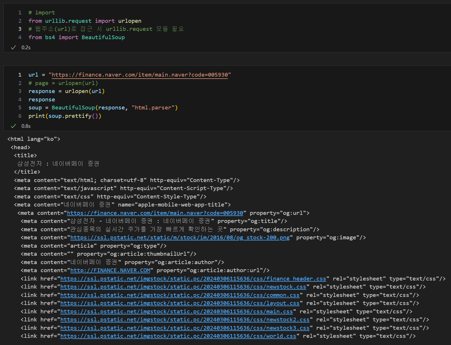 from urllib.request import urlopen : 웹주소(url)로 접근 시 urllib.request 모듈 필요