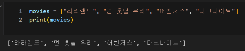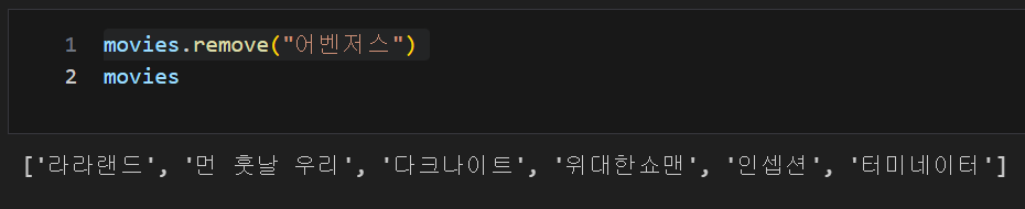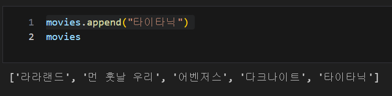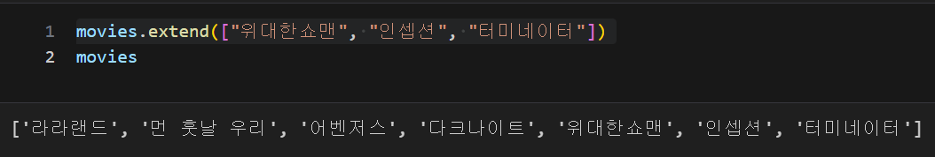 movies.extend(["위대한쇼맨", "인셉션", "터미네이터"])