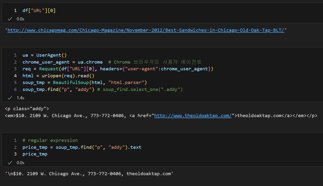 - from fake_useragent import UserAgent를 통한 자동화 프로그램 여부 확인 후 접속 -> ua = UserAgent()