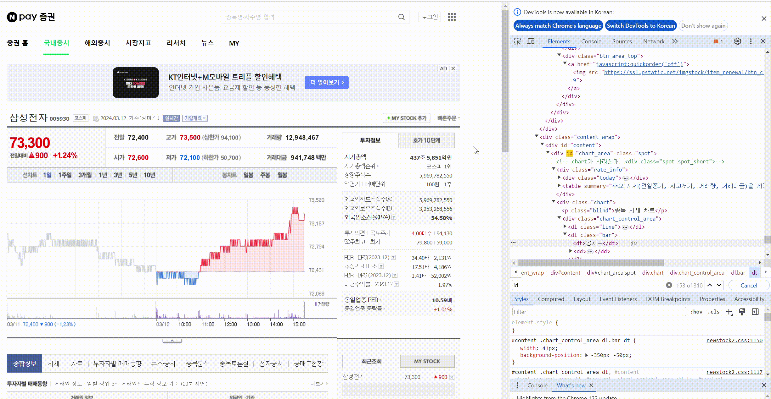 개발자 도구에서 태그값 찾기 : ctrl + shift + c