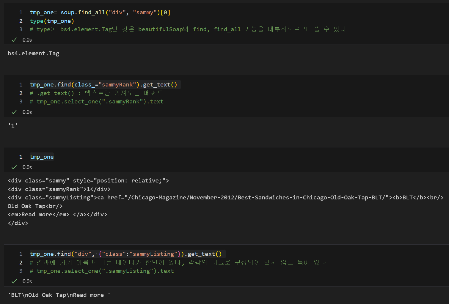 type이 bs4.element.Tag인 것은 beautifulSoap의 find, find_all 기능을 내부적으로 또 쓸 수 있다