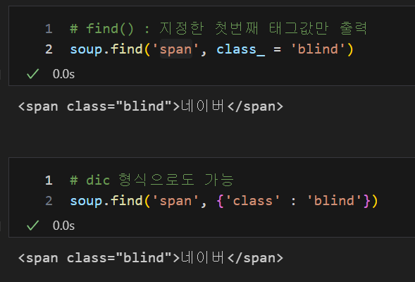 태그로 원하는 값 찾기(태그와 속성값), find(태그값, 속성값)