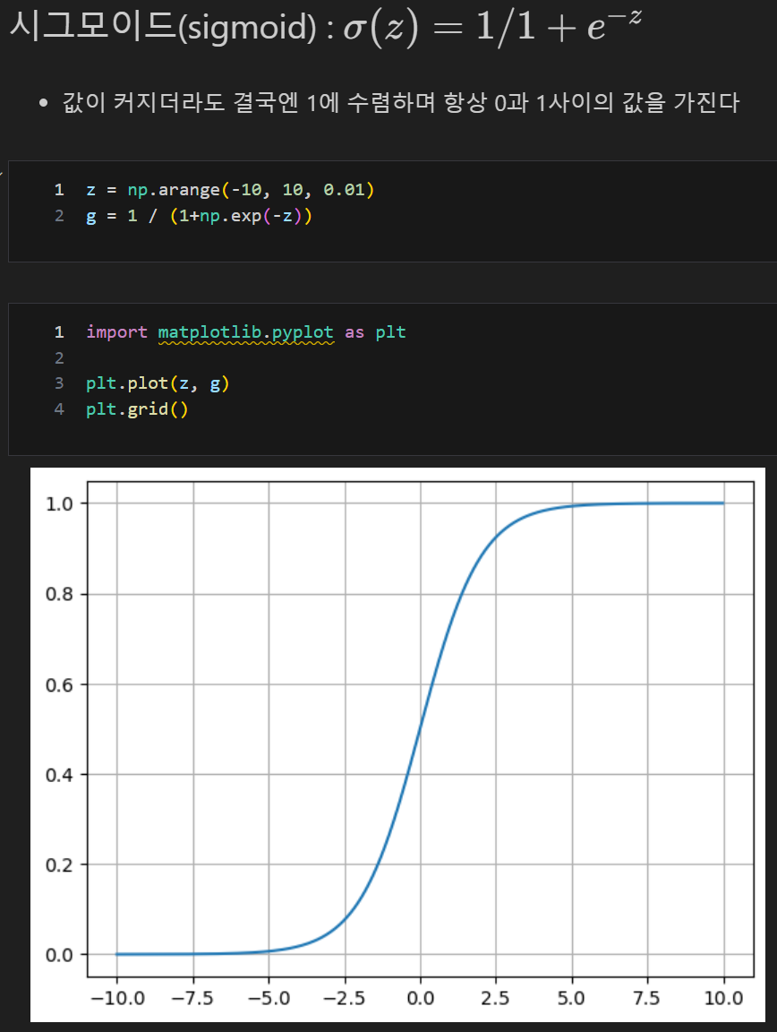 logistic_regressin에서 '시그모이드(Sigmoid) 함수'활성화 함수로 사용