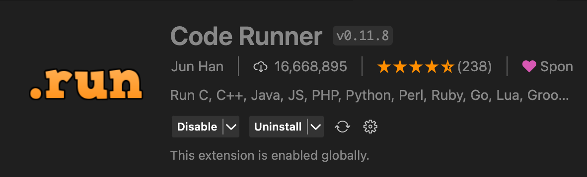 위와 같이 컴파일 후 실행해도 되지만 누구나 귀찮을 것이기 때문에 VSCode를 사용한다면 Code Runner를 설치해서 단축키로 한 방에 실행하도록 하자.