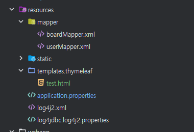 타임리프 구현을 위한 html파일은 위 구조도처럼 resources/templates