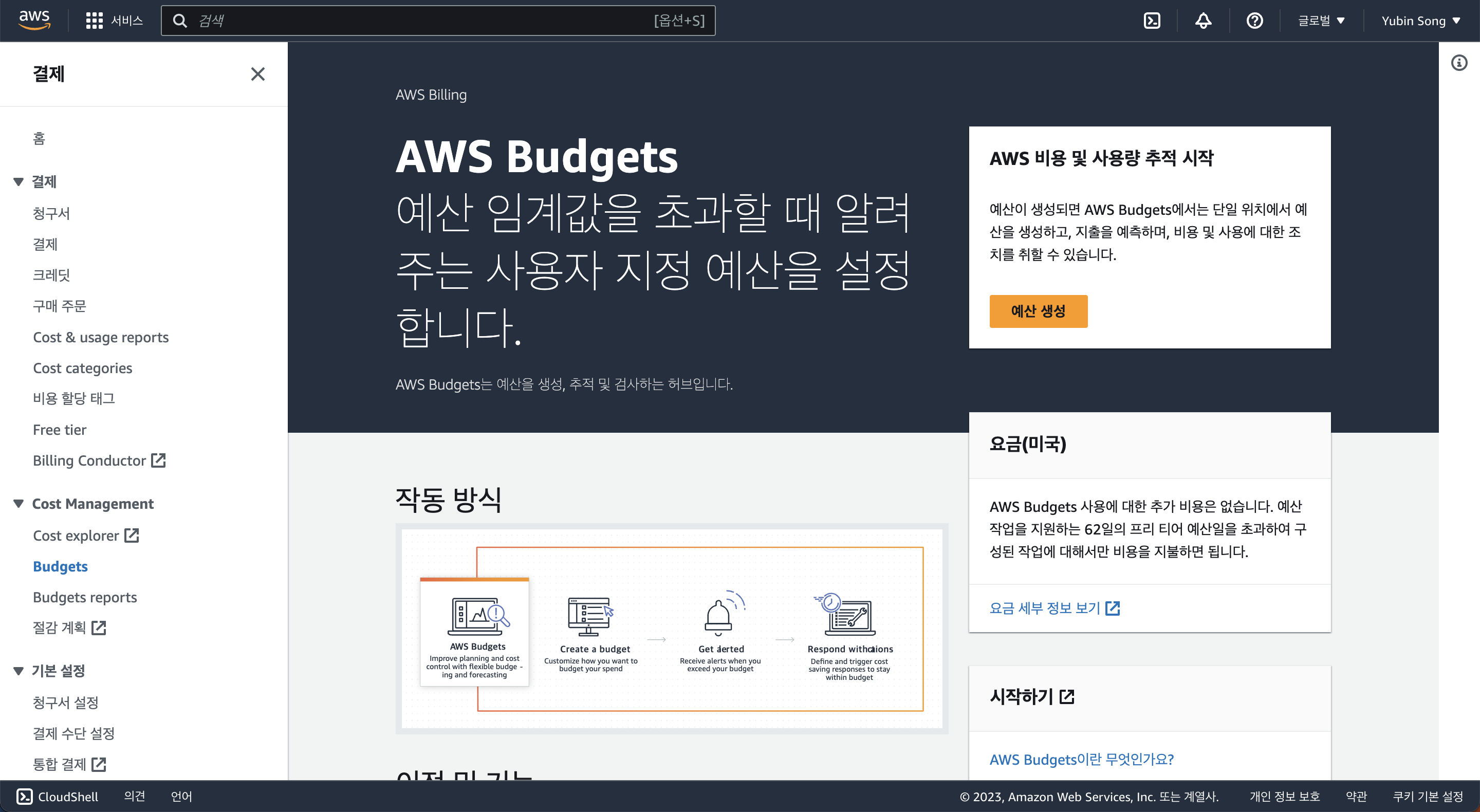다음과 같이 예산 관리 페이지에 들어가서 예산 생성 버튼을 누르면,