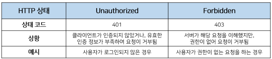 📌401(Unauthorized)와 403(Forbidden)의 차이