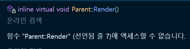 부모 클래스 포인터에 자식 포인터를 할당해도 부모 함수쪽의 접근 권한을 따라간다.