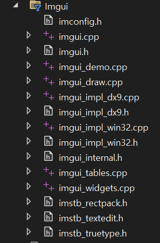 프로젝트에 imgui 관련 파일들을 넣는다.