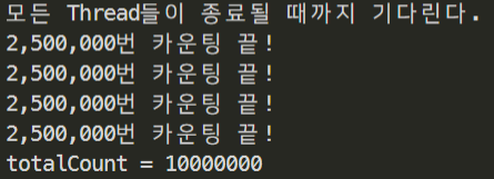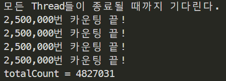 위의 실행 결과 totalCount 변수안에 10,000,000이 아니라 4,827,031이 들어가 있다는 것을 확인