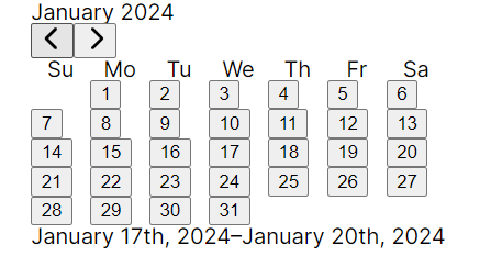 파일이 있어 import해주니 달력 모양과 시작과 끝 날짜를 클릭하면 제대로 색칠되는 것을 볼 수 있다.