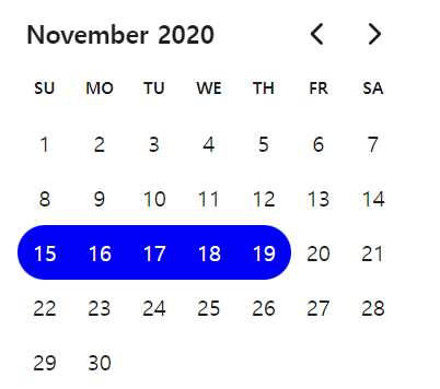DayPikcer 속성 selected를 통해 색칠되어야 하는 범위