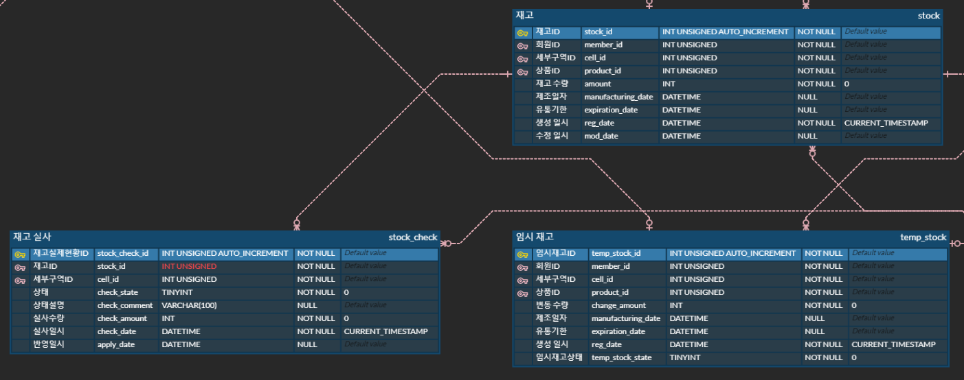 - 임시 재고 테이블에서 입고, 출고 변동값을 계속 insert 받다가 일정 시간이 될 때(마감)마다 재고테이블로 업데이트를한다.
