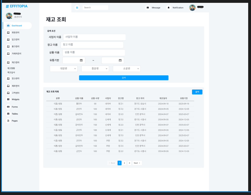 Effitopia는 B2B 창고 관리 시스템(WMS) 개발 프로젝트 입니다. WMS(Warehouse Management System)란 창고 내 재고를 효율적으로 관리하고, 입고부터 배송까지 신뢰성 있는 물류 운영을 지원하는 시스템으로 이 시스템의 이상향을 실현하는 것을 목표로 하였습니다.