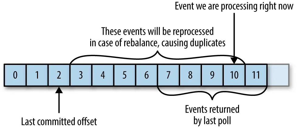 - commit되지 않은 3~10 구간은 리밸런스나 재시작 시 다시 읽혀 중복 처리가 발생할 수 있다.