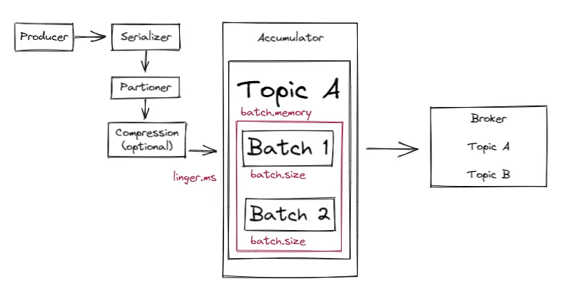 • Accumulator는 메시지를 batch.size 기준으로 Batch 1, Batch 2처럼 묶어서 관리한다.