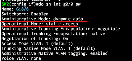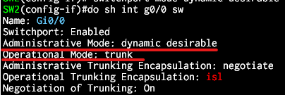 SW1(config-if)#switchport mode dynamic desirableSW2(config)#int g0/0