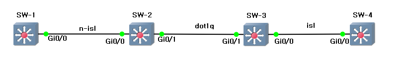 SW1(Dynamic auto), SW2(trunk/isl) ---> trunk/isl