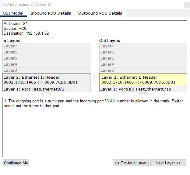 PC0>ping 192.168.1.62 vlan tag(dot1q) 표시