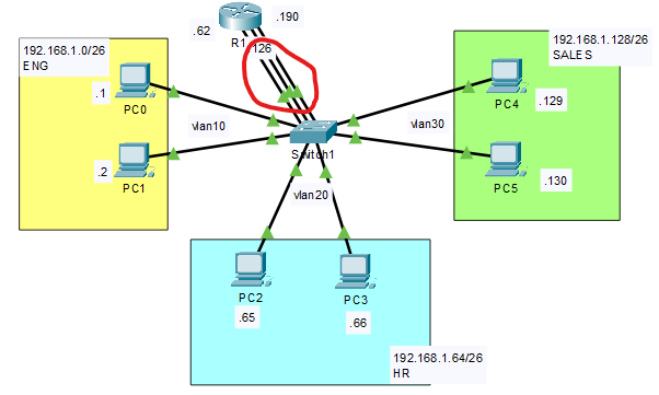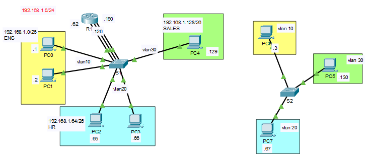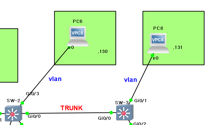 -> vlan 설정은 했지만 같은 네트워크 영역, 게이트웨이와 연결되어 있지 않음 // 스위치끼리 연결이 필요