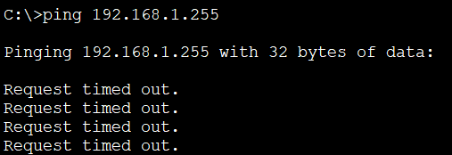 PC0>ping 192.168.1.255 -> ping 실패