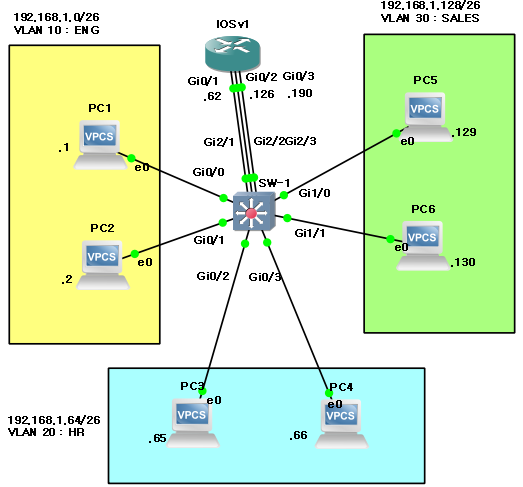 <실습1> vlan 설정으로 네트워크간 연결