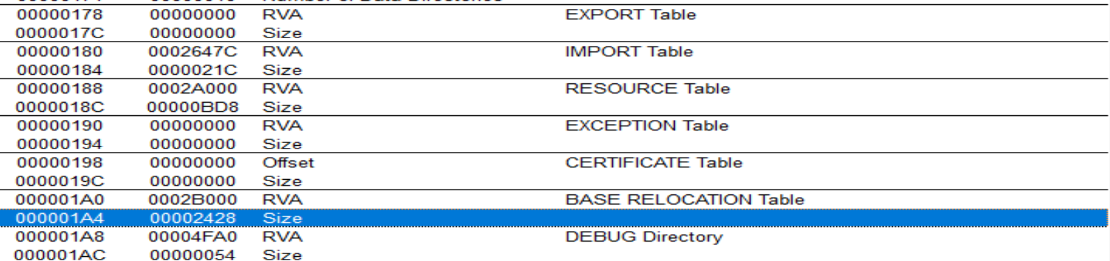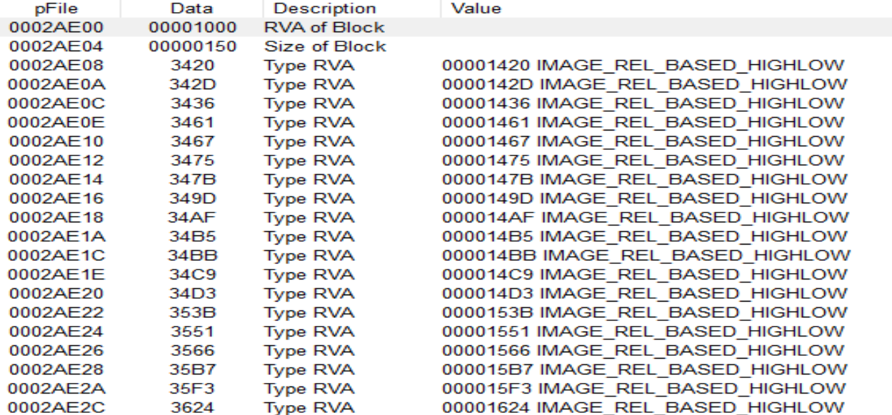 - 하드코딩된 주소들의 offset을 모아놓은 Base Relocation Table을 확인한다.
