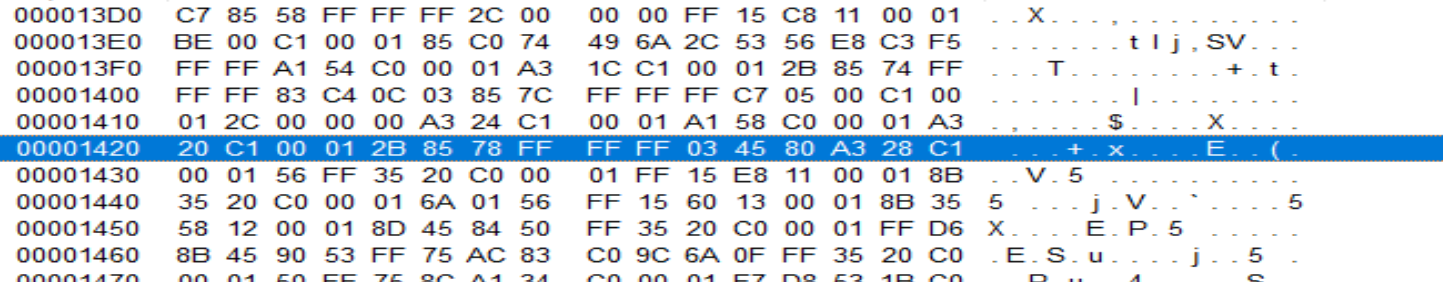 따라서 VirtualAddress(1000) + Offset(420) = 1420(RVA)이다.
