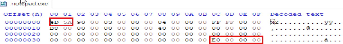 1. 빨간색 박스는 NT header의 Signature로 "PE00"값이 들어간다.