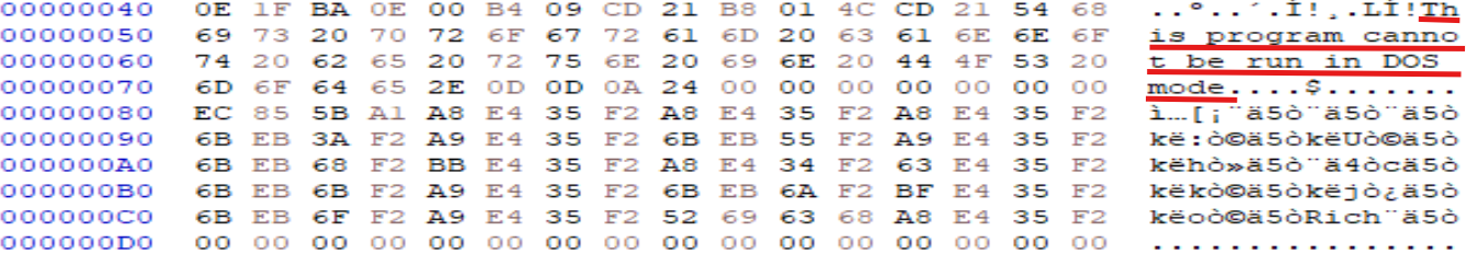 1. 필수적인 헤더는 아니고 옵션으로 DOS 환경에서 실행하면 빨간 줄인 "This program cannot be run in DOS mode"라고 출력된다.