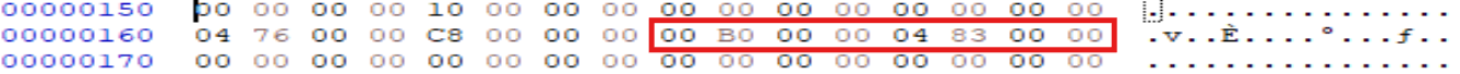 EAT는 하나의 구조체만 존재하기 때문에 이것만 보면 되는데, RVA : B000, Size : 8304으로 확인 할 수 있다. 이것도 IAT랑 마찬가지로 RVA를 RAW로 바꿔서 그 주소로 가서 확인해 보면 각각의 EAT 멤버 변수들의 값을 확인 할 수 있다.