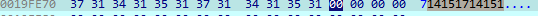 ESP는 19FDEC를 가리키고 있으므로 첫번째 원소의 값을 71이 나왔다. for문이니 모든 문자에 대해서 진행할 것으로 예상되므로 일단 모든 문자에 대해 진행한 게 Buffer에 저장되므로 다 돌리고 난 뒤의 Buffer 값을 보면 그게 답일 것이다.