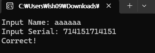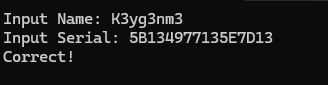 Decompiling한 코드를 분석해보자. InputName을 입력받고 반복문을 돌려 Serial_Key로 바꾼 다음, 비교하여 맞으면 'Correct!' 아니면 'Wrong!'을 출력한다.