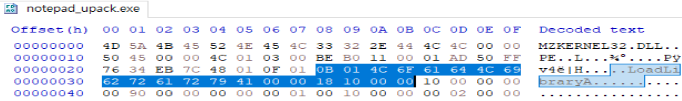2를 추적해서 확인해 보면 아까 보았던 DOS Header의 MZ 다음 kernel32.dll이라는 이름이 나온다. 잘 입력되어있는 것을 확인 할 수 있다.