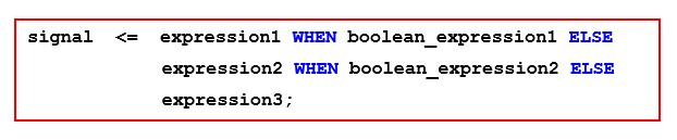3) 위의 2가지 조건이 모두 성립하지 않으면 signal <= expression3이 실행된다.