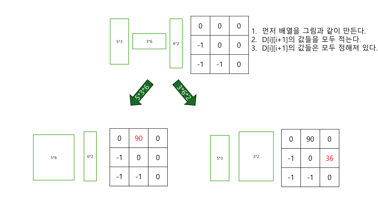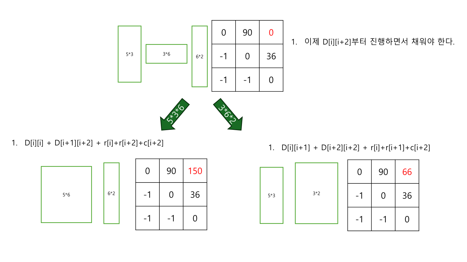 - d[i][i+1]는 dn−1∗dn∗dn+1이다.