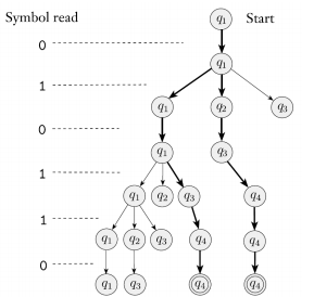 이와 다르게, 특정한 상태에서 여러 상태로 갈 수 있는 것을 nondeterminism이라고 하며, 다음 상태가 정확히 정해지지 않았기 때문에 비결정성이라고 한다.