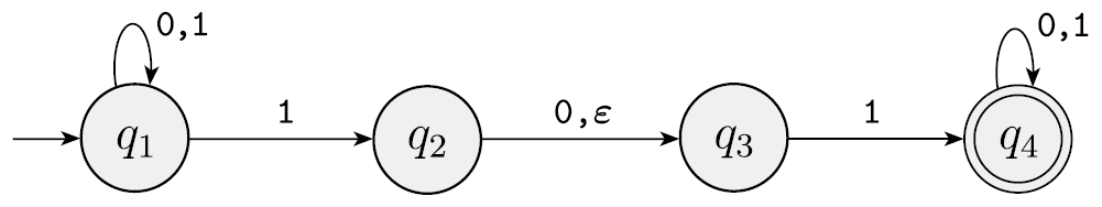 그러므로 Q라는 상태들의 집합이 있을 때, P(Q)는 Q의 power set(부분 집합을 모아둔 집합)이며, δ : Q × Σε → P(Q)로 정의된다.