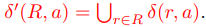 - δ′(R, a) = {q ∈ Q | q ∈ E(δ(r, a)), r ∈ R}